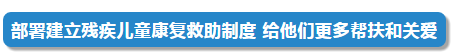 1. 建立残疾儿童康复救助制度,从今年10月1日起,对符合条件的0—6岁视力、听力、言语、肢体、智力等残疾儿童和孤独症儿童,包括经济困难家庭、福利机构收养的残疾儿童和残疾孤儿等,提供手术、辅助器具配置和康复训练等救助。