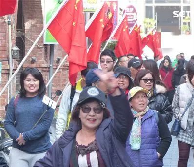 今年元旦期间,台湾金门的“模范街”升起了五星红旗;而在1月17日,台湾统派团体爱国同心会等更是首度将一百面五星红旗插到了民进党党部前的华山公园,蔡英文去党部开会时,经过了这片“五星红旗海”。