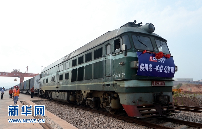 为世界和平发展注入强劲正能量——记中国担任上海合作组织轮值主席国一年间在江西省赣州市南康区赣州港,“赣州港至哈萨克斯坦”中欧班列等待发车(2017年7月27日摄)。新华社记者 彭昭之 摄