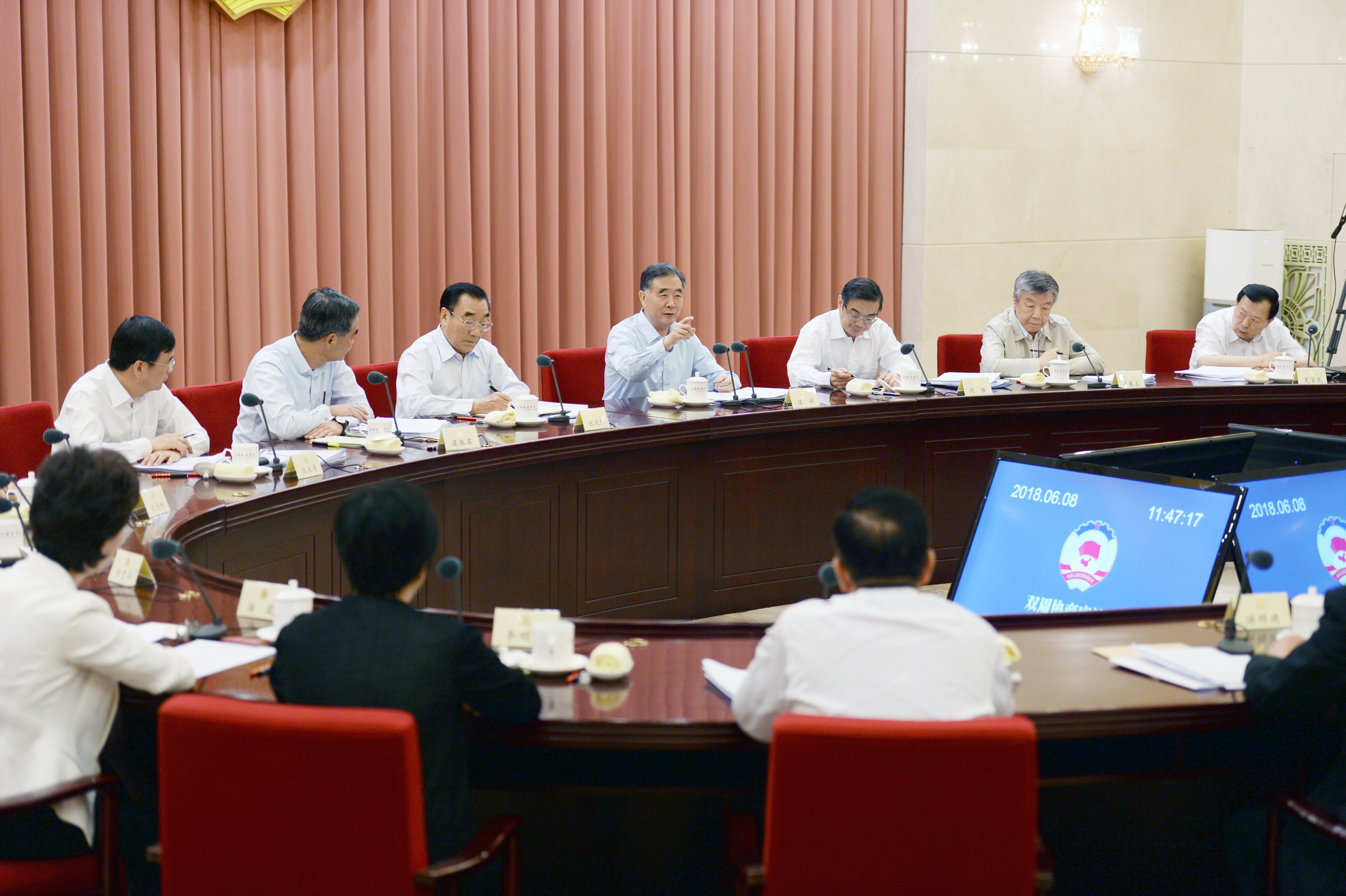 6月8日上午,由中共中央政治局常委、全国政协主席汪洋主持的十三届全国政协第四次双周协商座谈会在全国政协礼堂举行。围绕如何“基本解决执行难问题”,12位全国政协委员谈了自己的想法,提出意见建议。此前,全国政协社会和法制委员会组织委员赴最高人民法院以及河南、上海、北京等地调研,详细了解相关情况,通过调研与协商座谈,明确了思路,凝聚了共识。委员们表示,要充分发挥中国特色社会主义的政治优势和制度优势,形成合力,共同为人民法院打好这场攻坚战创造条件,助力助威。