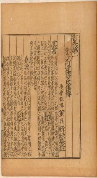 元代学者董鼎的《书集传辑录纂注》,为科举时代举子必读之参考书。董鼎族兄曾受学于朱熹门人,《书集传辑录纂注》为董鼎及其后代合编的一部围绕《尚书》展开的著作。此次发现的元至正翠岩精舍本为董书第二刻本,明代未见刊刻;清康熙年间有《通志堂经解》本,较为通行,但文字有讹误。由于目前中国大陆收藏的翠岩精舍刻本残缺不全,学者只能退而求其次,以清刻《通志堂经解》本作为工作本。上图原藏有一部翠岩精舍本,缺失第一卷及刻书刊记。这次又发现一部,二者相合,可配出一部完整的元本。