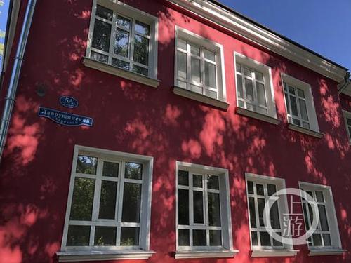 小楼的大门靠近拉弗鲁申斯基路,但铁门紧锁,只能通过背后的小路走向它的后门,穿过一片漂漂亮亮、尚未完工的砖路,就可以一览这栋红色建筑的真面目。这栋小楼分上下两层,一共大概有20多个房间,然而所有房门都上了锁。窗户上积累了一层厚厚的灰尘,要想看清楚里面的场景,只能用力把窗户擦拭干净,才能勉强看见——一楼大多数房间内,都已经完全被搬空,只有一个小房间内有一些生活和办公用品。粗略数了一下,包括六箱饮用水、一箱罐装啤酒、六个纸箱和几个白色箱子。至于电脑、电话、传真机、打印机这些办公必备的设备,早已不见踪影。