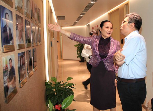 来到院士墙前,赵雯说,“九三学社上海组织先后拥有31位院士,我们领导班子成员中就有三位院士!老主委杨槱院士已经101岁了,我们是‘三任主委同堂’?!?郑钢淼询问了院士们从事的专业和老主委们的近况,他说:“全国民主党派中,九三学社的院士总量最多。你们的党相当厉害!九三学社上海组织人数在全国‘九三’中是第一的,力量很强,希望共同推动工作,做好工作。”