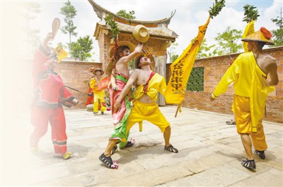 安海安平桥景区的端午嗦啰嗹表演。