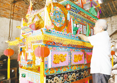 刘桂生在装饰龙船。