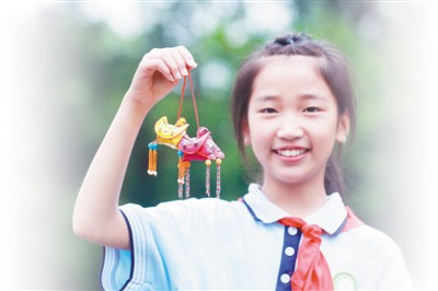 芝村小学五年级学生陈思炫展示自己做的香囊。