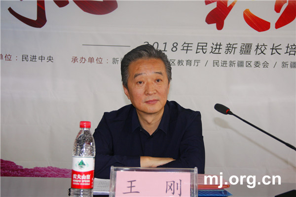 受民进中央主席蔡达峰、常务副主席刘新成委托,王刚代表民进中央对参加培训的校长们表示热烈欢迎,向一直以来给予培训班大力支持的中共新疆自治区委统战部、自治区教育厅、民进新疆区委会、新疆师范大学等单位表示感谢。