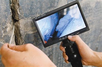 省文物保护研究院研究员马宏林说,现在进行的是“抽检”,把完整的、不同种损毁问题情况的典型石刻挑选出来进行检测。给后面的大规模检测方案做例证。目前X光、超声波、内窥镜等各种仪器都上了。