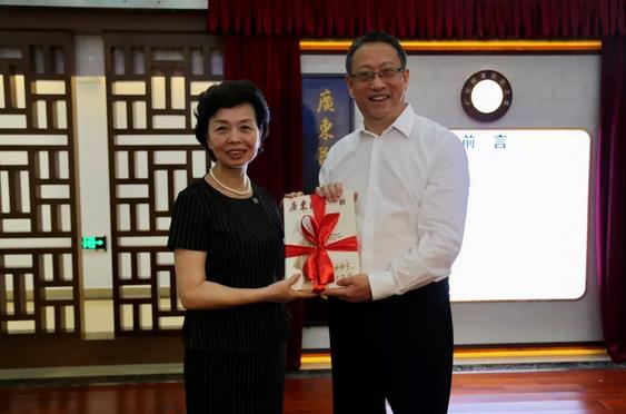 郑建邦、程萍、郭汉毅、巴宇共同为广东民革“党员之家”揭牌。程萍向郑建邦赠送了《广东民革》杂志,与会人员参观了省民革机关的民革党员之家。