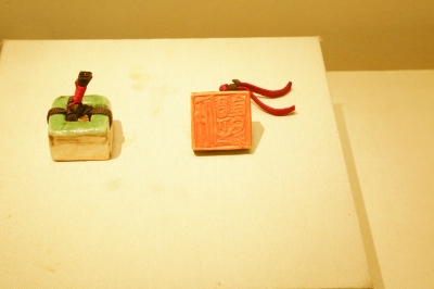 “陶瓷印”是“陶印”和“瓷印”的统称,其制作分为制坯(钮)、素烧、刻篆、上釉、烧制成印等流程。陶印以泥刻就印章后火范而成,瓷印为瓷质印章,约始于唐宋,多见于宋元。