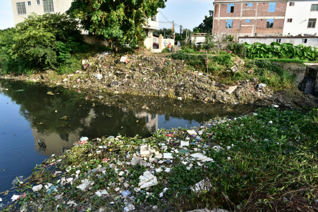 图3 汕头市潮南区陈店镇河涌淤满垃圾