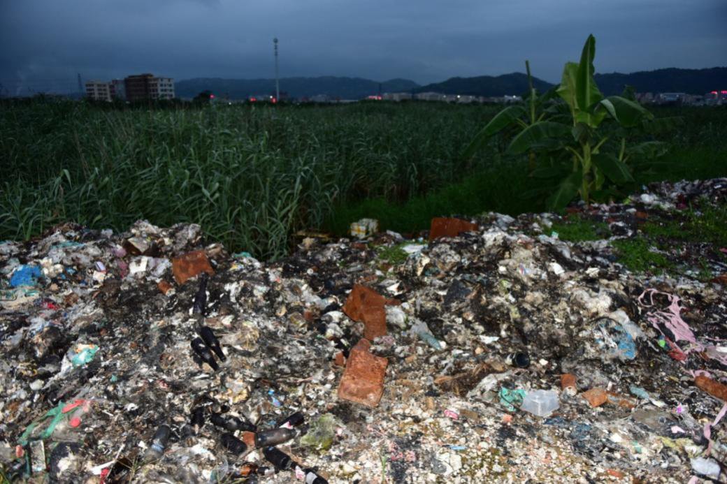 图4 汕头市潮阳区农田内焚烧生活垃圾和电子废物