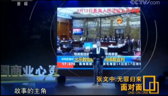 2018年2月12日,最高人民法院依法组成五人合议庭,公开开庭审理张文中案。再审过程中,最高人民检察院出庭检察员认为,原判适用法律错误,导致定罪量刑错误,建议依法改判张文中无罪。