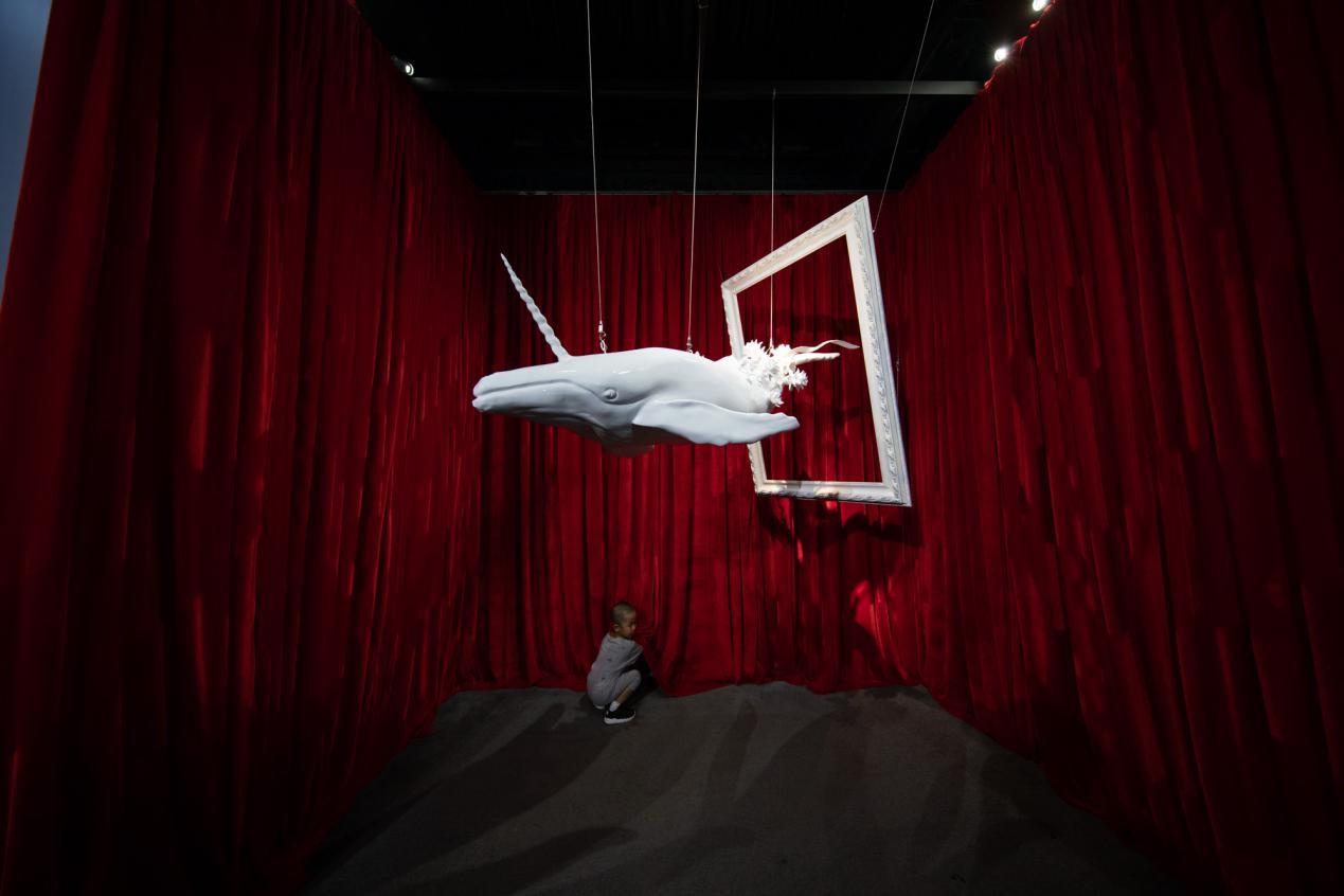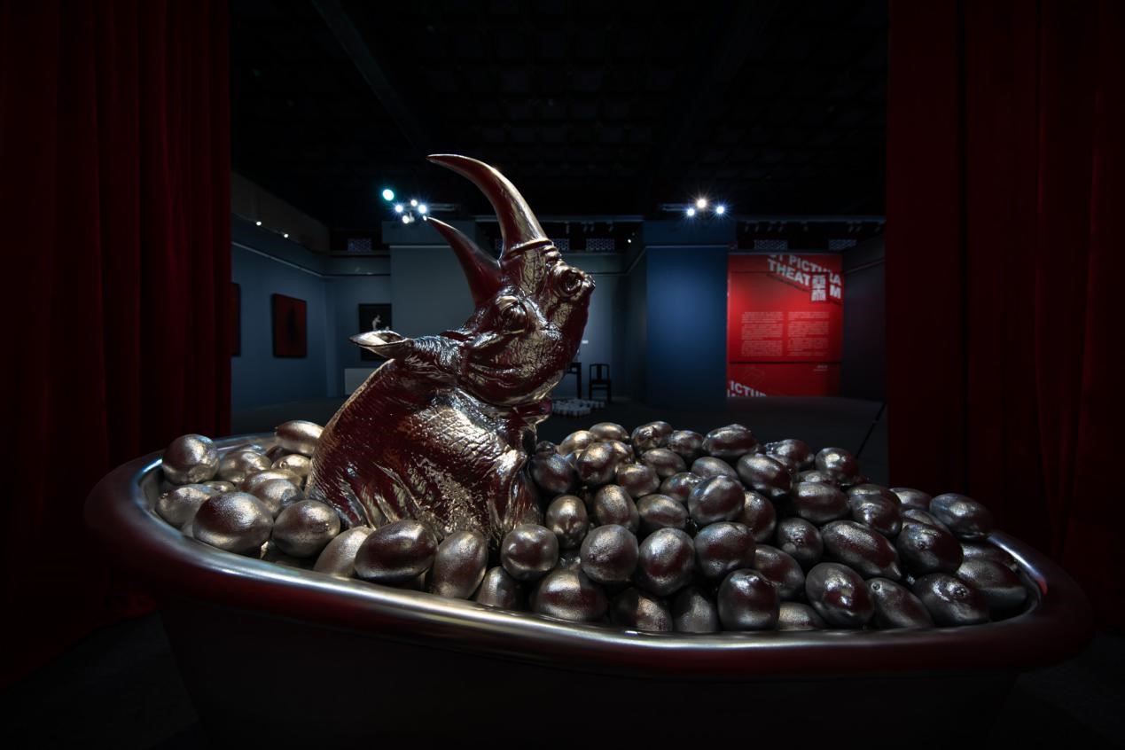 在本次展览的装置艺术板块,《仲夏夜之梦》《图兰朵》《茶馆》《恋爱的犀?!贰兑桓瞿吧说睦葱拧返戎型饩浣谀艟褐穸谰叽匆獾墓顾贾杏枰钥占浜褪奔涞闹厮?。其中,《茶馆》是中国观众颇为熟悉的老舍话剧经典,而聂竞竹却让喝茶的茶碗变成与茶似乎不搭的咖啡杯。聂竞竹表示,希望作品能启发并引导置身于其中的观众给出自己对于这些作品的解读,并能够在装置艺术的“物”中,唤起每个观者对于“心”的观照。