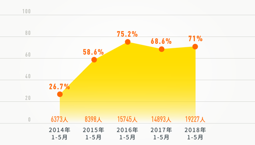 另一个值得关注的维度是,党纪政务处分人数占处理人数的比例。数据显示,今年1-5月,给予党政纪处分19227人,约占处理人数的71%。而去年同期,这一比例为68.6%;去年全年,这一比例为69.9%。无论同比、环比,数据均持续上升,体现了党中央持之以恒正风肃纪的立场和巩固拓展成果坚如磐石的决心,也反映出对违反八项规定精神问题的执纪力度不断强化、持续保持高压的内在逻辑。