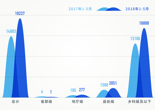 1-5月给予党政纪处分各级别人数中,除省部级外,同比均大幅提升