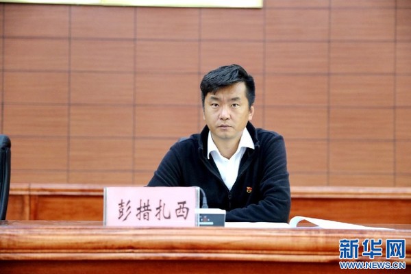 图为彭措扎西在现场。区直团工委供图。