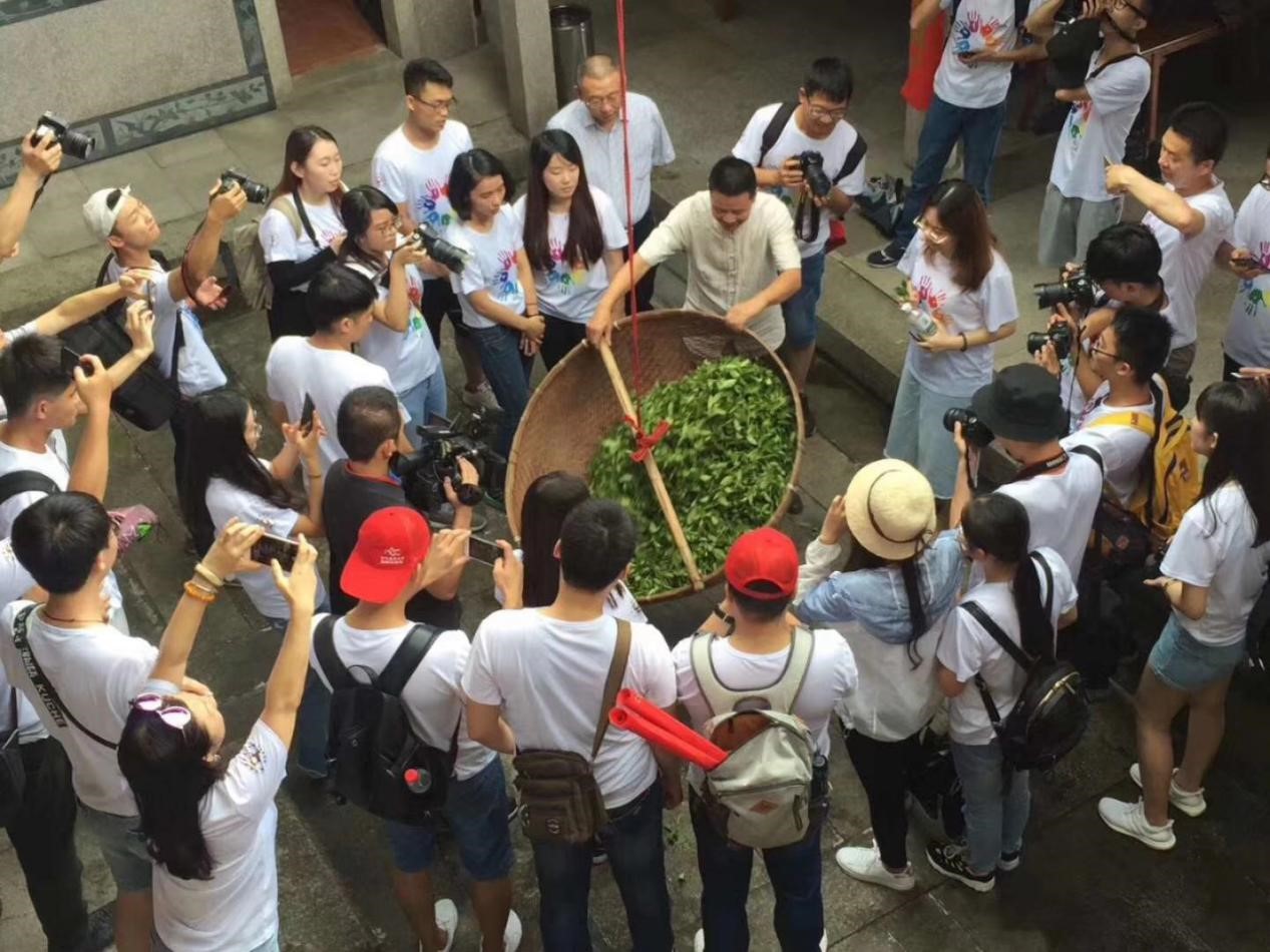 一片片茶树叶子,如何做成茶叶,呈现出入口的香甜?在国家级非遗安溪铁观音制作技艺传承人魏月德示范摇青手法,片片茶青开始散发清香时,同学们一边惊叹,一边越发好奇神奇的茶叶制作技艺。