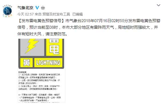北京整晚大雨!连发暴雨、雷电、地质灾害、洪水4个黄色预警