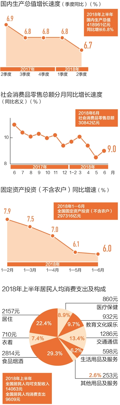 消费仍是顶梁柱。“从今年上半年主要的数据来看,经济增长的格局中,内需是决定力量,内需里面消费又是顶梁柱。从下半年来看,消费还是有条件延续平稳较快的增长态势?!泵⒂滤?消费保持较快增长有四大理由:一是消费本身是刚性增长;二是居民收入总体保持较快增长,而消费是收入的函数;三是基于我国经济发展阶段,消费结构升级的步伐只会加快;四是不断地满足人民日益增长的美好生活需要,加大了进口,丰富了供给,也会促进市场销售的活跃。