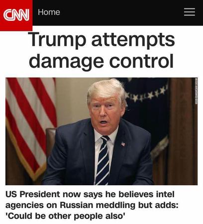 差不多一天前,在与普京共同出席的记者会上,有人问特朗普是相信普京还是相信美国情报机构,后者的调查结果是俄罗斯干预了2016年美国大选。