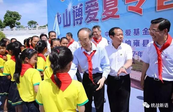 2017年7月,民革中央为纳雍县贫困家庭留守儿童举办“中山博爱夏令营”活动,民革中央主席万鄂湘在开营仪式上与学生们亲切交谈