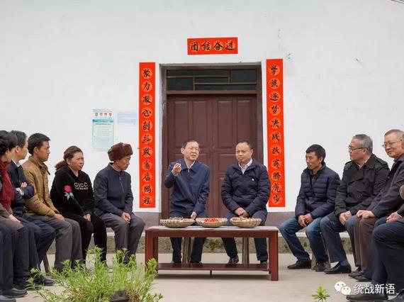 民建中央主席郝明金在花溪乡沙坝村与基层干部和贫困户代表座谈