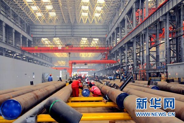 资料图 位于青岛的中国石油海洋工程有限公司亚马尔液化天然气项目??橹圃煜殖?。图为中间产品区。新华网记者 张天宇 摄