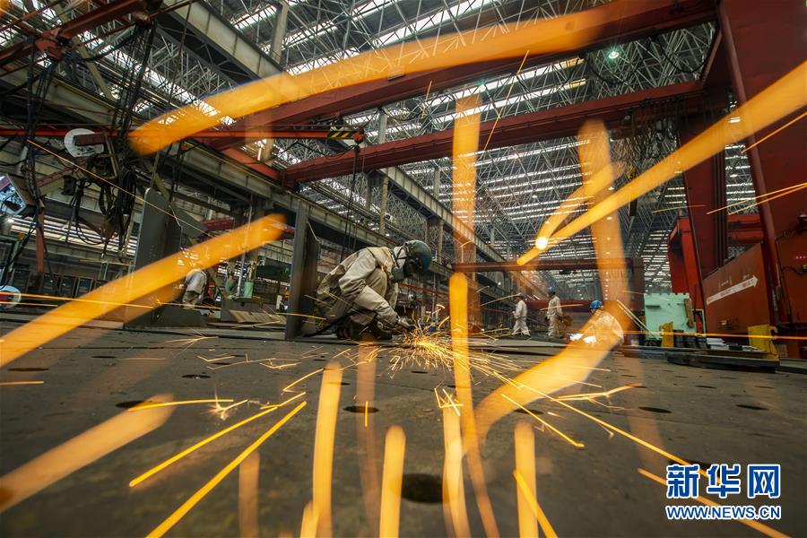 工人在南通中远海运川崎船舶工程有限公司智能化车间作业(7月6日摄)。小到牙刷、电池,大到汽车、轮船、大飞机……改革开放40年,中国制造坚持开拓,苦练内功,在与世界贸易伙伴携手共进中,逐渐融入全球贸易体系。新华社记者 沈伯韩 摄