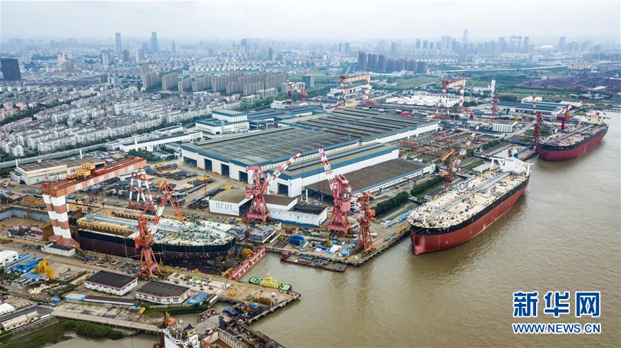 这是南通中远海运川崎船舶工程有限公司船坞与正在建造的船只(7月6日无人机拍摄)。小到牙刷、电池,大到汽车、轮船、大飞机……改革开放40年,中国制造坚持开拓,苦练内功,在与世界贸易伙伴携手共进中,逐渐融入全球贸易体系。新华社记者 沈伯韩 摄