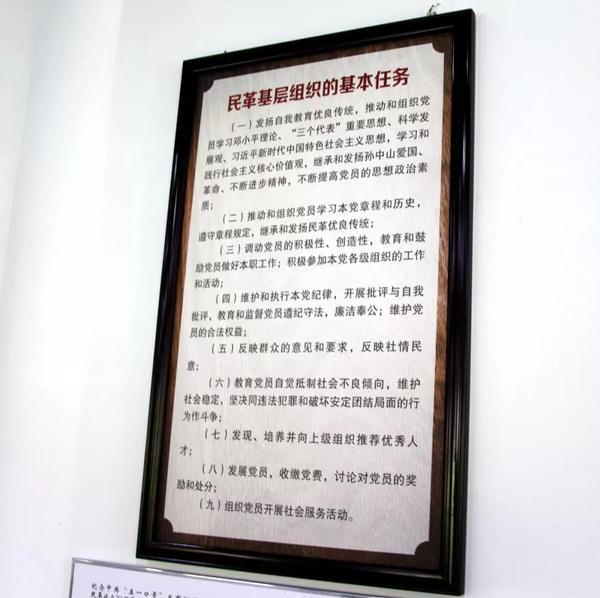 毕节民革党员之家悬挂的《民革基层组织的基本任务》