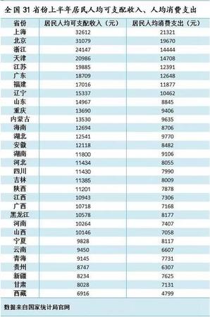 上半年京沪人均可支配收入突破3万,看看你家那里多少