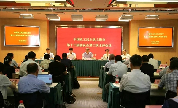 2018年7月19日下午,农工党上海市第十三届委员会第三次全体会议在上海民主党派大厦6楼第一会议室召开?;嵋榇锪伺┕さ持醒胧烊纬N峋窈椭泄采虾J形唤焖拇稳峋瘢毓肆伺┕さ成虾J形?018年上半年工作并布置下半年工作,部署动员基层组织创优工作,并举行“不忘合作初心,继续携手前进”主题教育活动启动仪式。