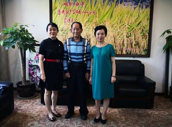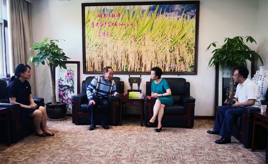 7月18日,民革广东省委会主委程萍前往湖南农业科学院拜会杂交水稻之父、中国工程院院士袁隆平。双方就杂交水稻在广东省的推广交换了意见。 省委会秘书长董桂英陪同拜会。