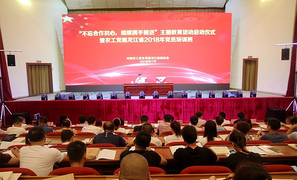 7月25日上午,“不忘合作初心,继续携手前进”主题教育活动启动仪式暨农工党黑龙江省委2018年党员培训班开班式在哈尔滨举行。黑龙江省政协副主席、农工党黑龙江省委会主委马立群出席并讲党课。农工党黑龙江省委会常委、黑龙江省科学院院长郭春景,省委会副主委宋立权、刘柏辉、臧淑英、魏芝红、朱清霞和省委会秘书长孔令全出席活动,农工党黑龙江省委会驻会副主委刘长青主持仪式。马立群以《学习贯彻习近平新时代中国特色社会主义思想,不忘合作初心,谱写履职尽责新篇章》为题,结合工作实际,带头讲党课,正式启动农工党黑龙江省委会主题教育活动2018年“三学一讲”专题活动。