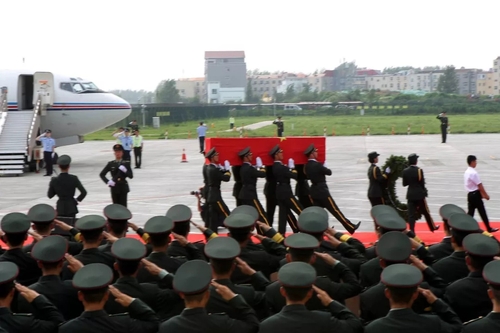 △2016年7月20日,在南苏丹执行维和任务牺牲的战士李磊、杨树朋遗体回国