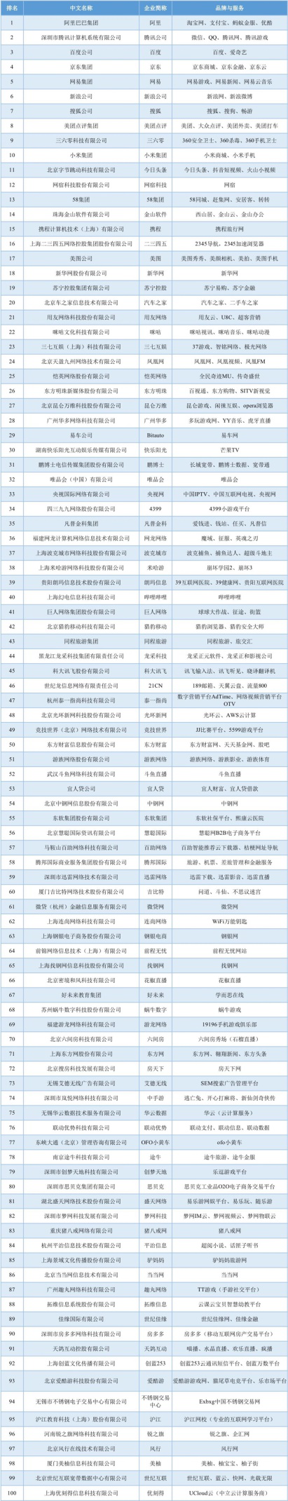 2018年中国互联网企业100强揭晓 BAT包揽前三ofo上榜