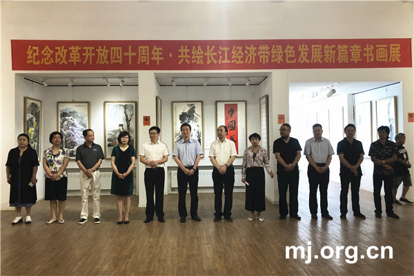 8月7日上午,民进中央副主席王刚出席“纪念改革开放四十周年·共绘长江经济带绿色发展新篇章书画展”开幕式并参观展览。