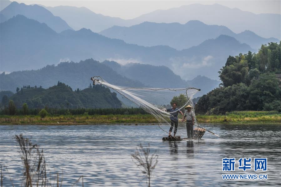 8月1日,淳安县汾口镇红星村的渔民乘着竹排,在千岛湖的支流武强溪上进行撒网捕捞作业。 从8月1日开始,除常年封库禁渔区水域之外,浙江省杭州市淳安县境内的溪流及千岛湖相应支流、入水口结束了为期3个月的季节性休渔,渔民们开启了新一季的捕捞作业。 随着当地季节性休渔期的实施,淳安县汾口镇的千岛湖支流水域内渔业资源得到了?;?与之相应的乡村旅游和休闲渔业也得到了发展,让各地游客能在开渔期间观看到传统竹排捕鱼的特色美景,还能品尝到鱼类美食,成为了当地乡村旅游的特色品牌。 新华社记者 徐昱 摄