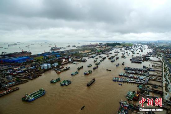 资料图:台风天气在港口避风的渔船。中新社发 姚峰 摄