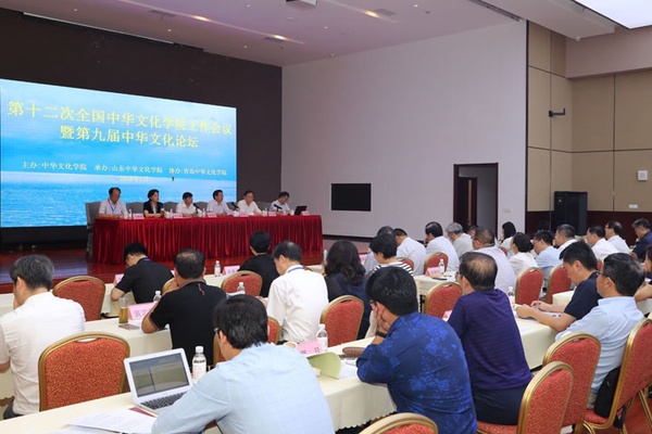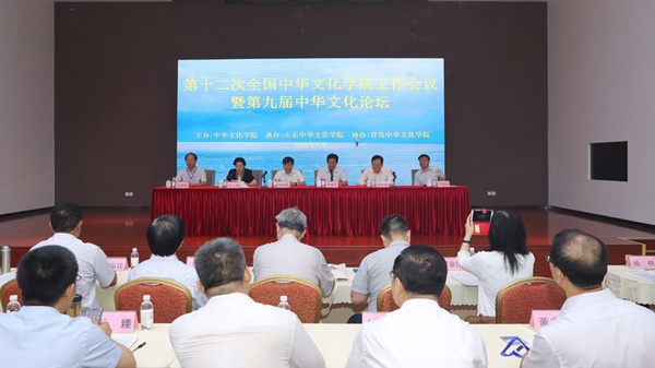 7月25日,第十二次全国中华文化学院工作会议暨第九届中华文化论坛在青岛开幕?;嵋橹荚谧芙崛谢幕г阂荒昀吹墓ぷ?,深入探讨新时代中华文化学院在“两个命运共同体”构建中的作用,并围绕“中华文明与人类命运共同体”为主题进行学术研讨。