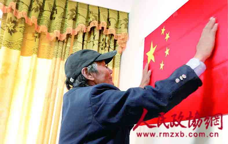旺扎在客厅墙上醒目的位置挂了一面五星红旗