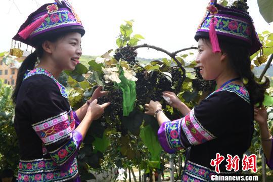 8月23日,罗城县仫佬族姑娘采收毛葡萄。 韦如代 摄