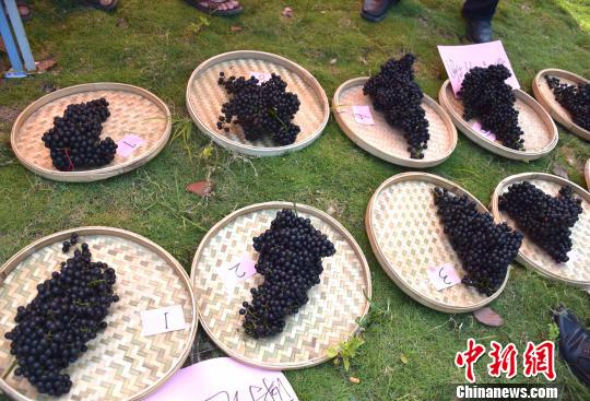 8月23日,罗城县举行毛葡萄鲜果单穗比赛?!√蓝?摄