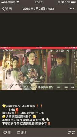 《延禧攻略》《如懿传》等影视剧正在热播,剧迷们的追剧热情持续高涨,每天盼着剧集更新成为常态。以《延禧攻略》为例,截至8月23日上午,剧集已更新至56集,在部分视频网站上充值成为会员后,可以观看至64集。但近日,有不少网友发现,网上出现了销售《延禧攻略》未播剧集的商家。购买资源后,可以直接观看至68集。