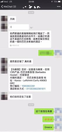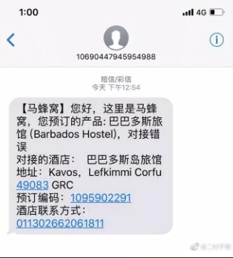 此外,@二村不停 也拜托在国内的朋友致电马蜂窝400客服,得到的结果是马蜂窝境外合作方将该网友预订的海参崴的Barbados Hostel错误的预订成了希腊的Barbados Island Hostel。