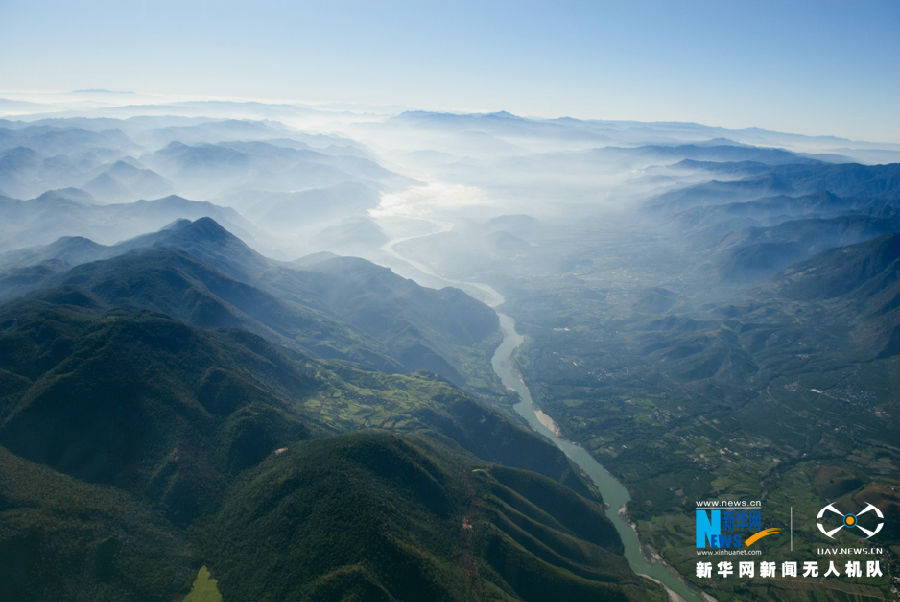 资料图 鸟瞰穿行在云岭高原的澜沧江。(新华网发)