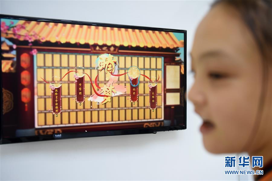 8月24日,一名小朋友在智博会现场体验运用眼动追踪技术开发的游戏。 新华社记者 唐奕 摄