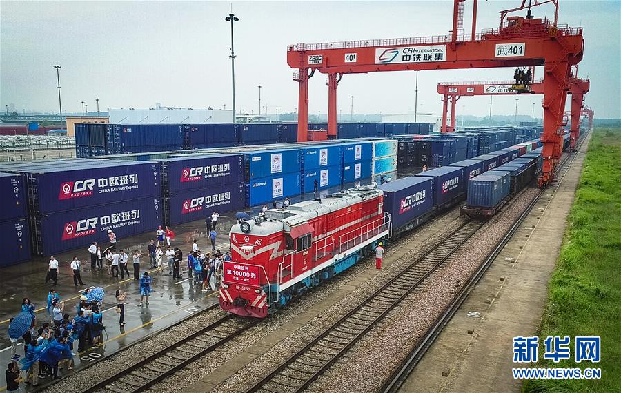 8月26日,X8044次中欧班列(汉堡—武汉)到达武汉吴家山铁路集装箱中心站。当日,随着X8044次中欧班列(汉堡—武汉)到达武汉吴家山铁路集装箱中心站,中欧班列累计开行数量达到10000列。自2011年开行以来,中欧班列快速发展,规模数量呈现井喷式增长。目前,中欧班列已成为“一带一路”建设的标志性成果,被喻为“一带一路”上的“钢铁驼队”。新华社记者 肖艺九 摄