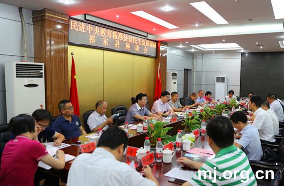 8月23日至24日,民进中央副主席、脱贫攻坚民主监督工作领导小组副组长黄震赴衡阳开展脱贫攻坚民主监督调研。图为调研组在衡阳市祁东县召开座谈会。